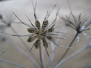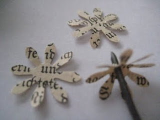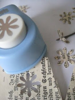 Ich stanzte Blüten aus einem alten Buch und
