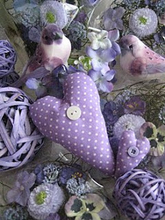 ... einige selbst genähte Herzen, sowie lila farbige Dekobälle,