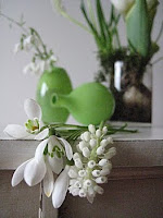 Schön wie Du die zarten Blümchen dekoriert hast!!!Die kleinen grünen Vasen im Hintergrund hab ich ;)Hab eine schöne kurze RestwocheLG Birgit