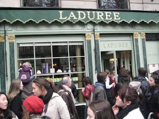 Nach längerem Suchen fanden wir den Shop von Ladurée und trauten unseren Augen kaum. Vor dem Laden standen die Menschen Schlage wie am Eiffelturm.