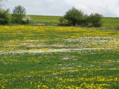 Das Pflücken des Löwenzahns wird durch eine zauberhafte Landschaft belohnt. Schönere Frühlingswiesen hat man hier, am Rande des Sauerlandes selten erblickt.