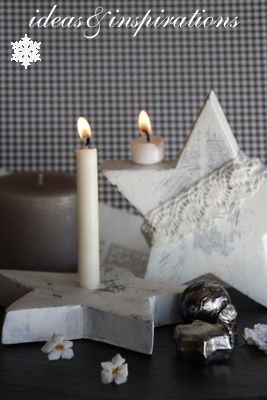 Diese beiden shabby Holzsterne möchte ich euch heute gerne zeigen. Ich habe sie als hässlich graue Exemplare in einem Drogeriemarkt, zu einem Sonderpreis von einem Euro pro Stück, gekauft.
