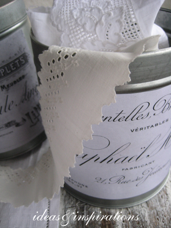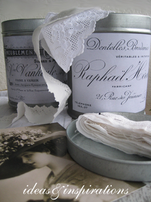 Ich habe erst einmal die schönen alten Spitzen in den beiden Dosen untergeracht. Vielleicht kaufe ich noch einige von den Blechdosen und bewahre dann meine Farbtuben, Stifte und Pinsel darin auf. Ich habe so viele Ideen dafür....