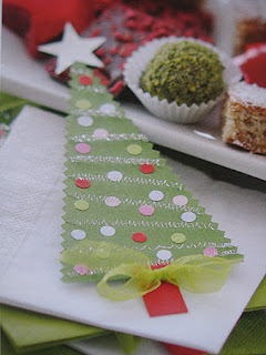 Als ich das Buch von Kerstin Heß durch blätterte, entdeckte ich eine tolle Tischdeko und niedliche Tannenbaum-Tischkarten.