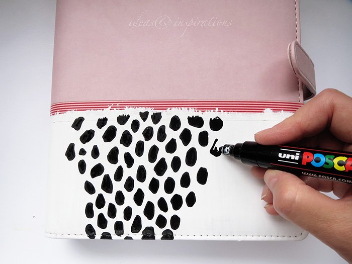 2. Mit dem dicken weißen Posca Marker koloriert Ihr das untere Drittel des Planners.