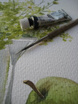 in den Garten, zum Bohnen pflücken, gegangen ist.