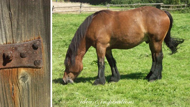 wie ein Feld mit Pferd und Pflug bearbeitet wird.