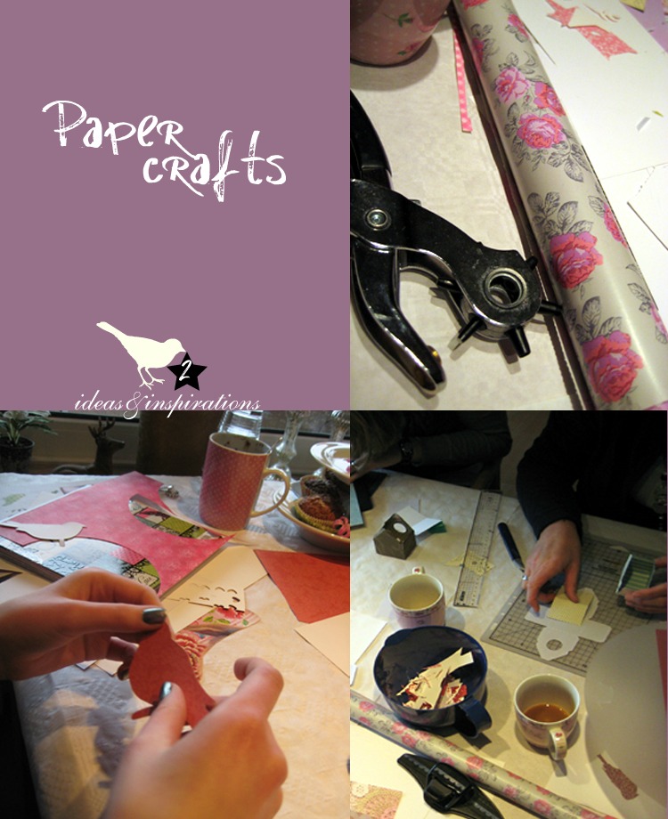 Die Vorlage für das Vogelhäuschen von HIER und verschiedene Vögel hatte ich bereits vorbereitet. Jeder suchte sich passende Papierkombinationen aus und los ging es ....